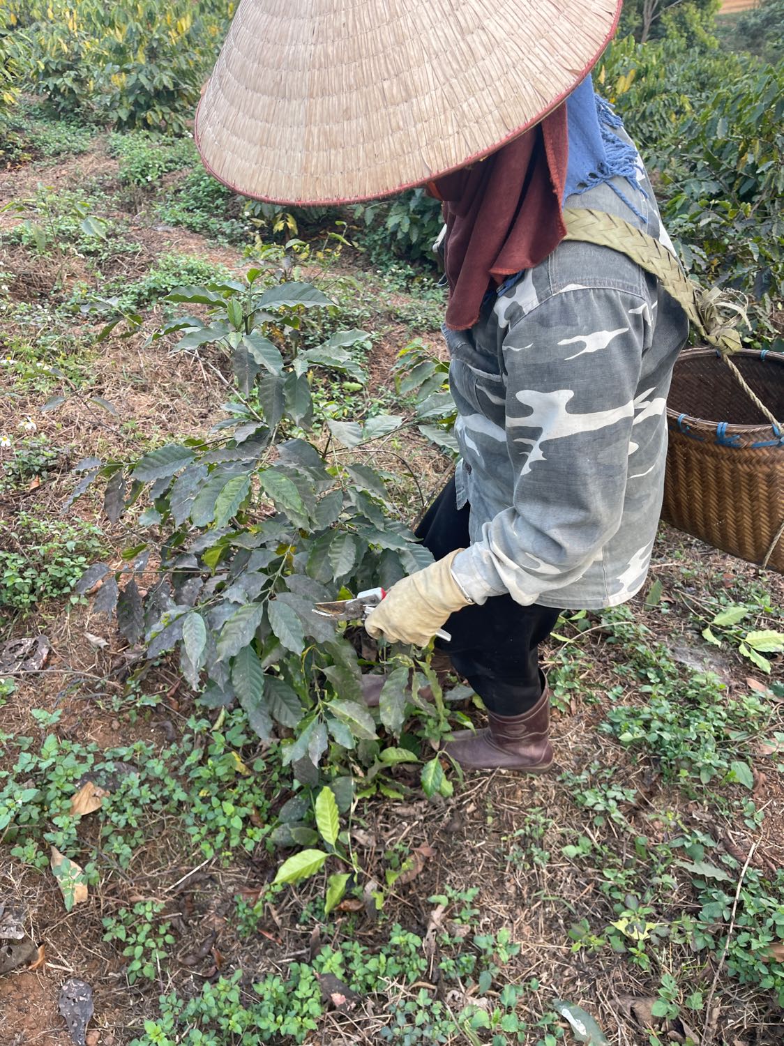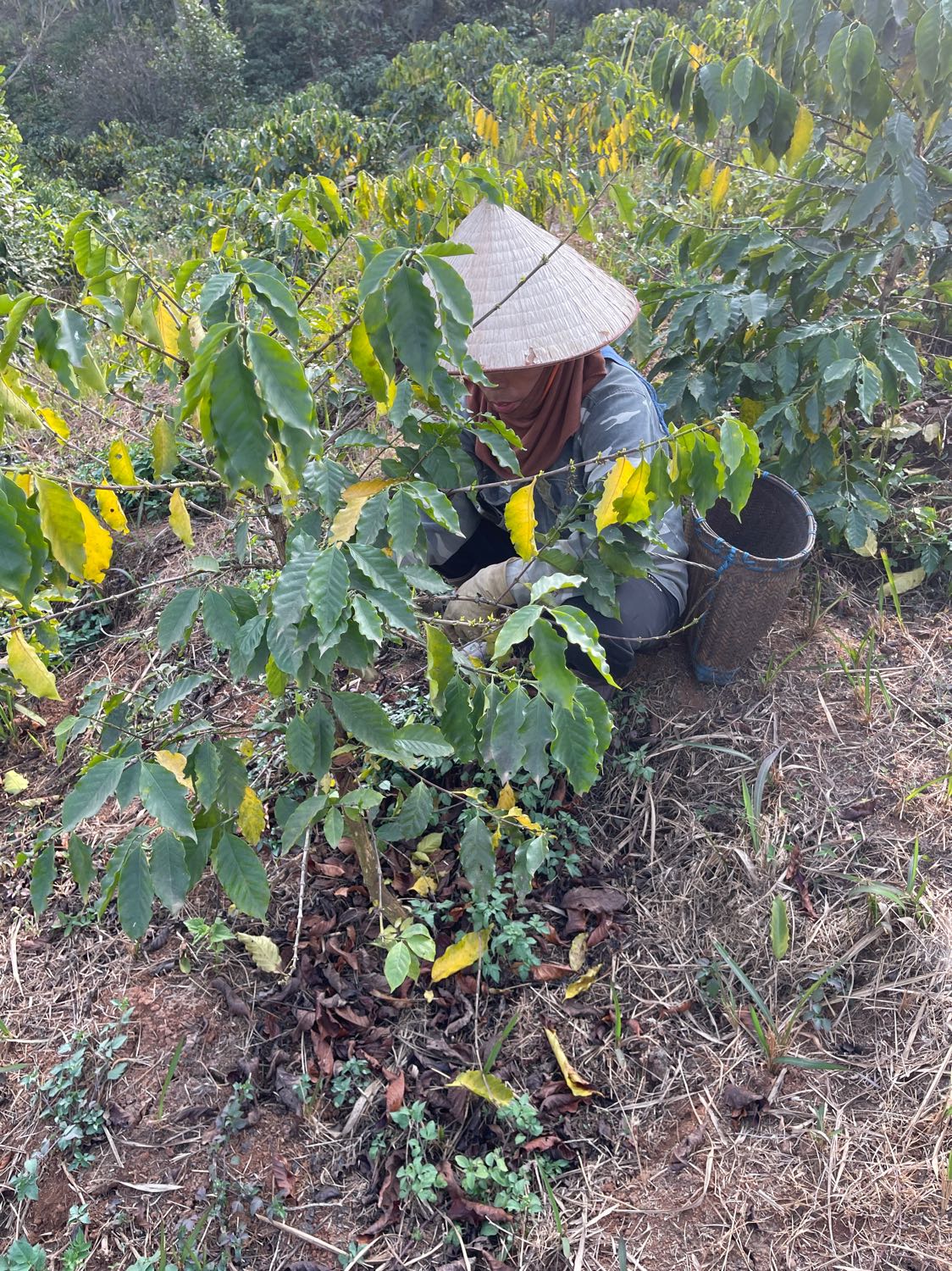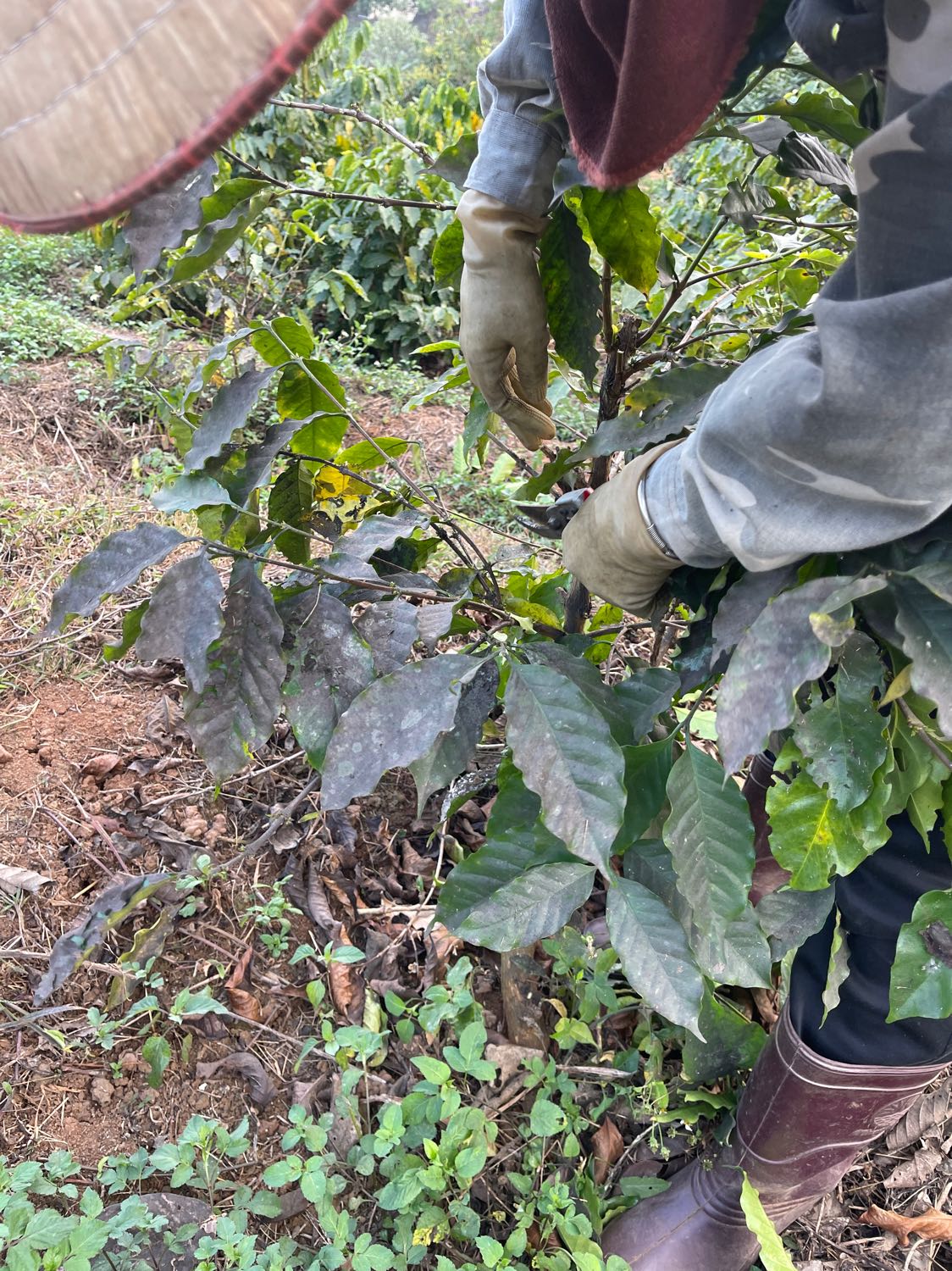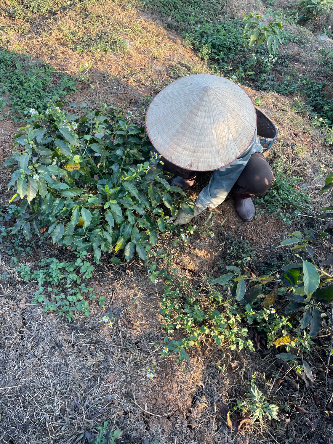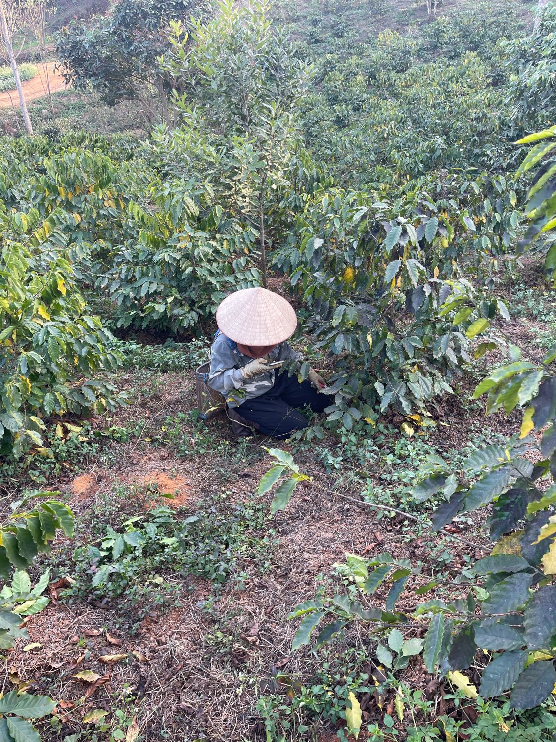 - Nhổ cỏ quanh gốc cây cà phê 3 nhân sự thoan, hưng, công
