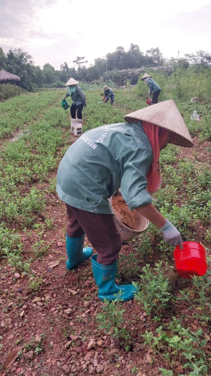 | 3 | Xuống giống - Tiến hành xuống giống trồng cây cúc Đinh Hương. được bón lót bằng phân chuồng ủ hoai mục, trồng khoảng cách cây x cây 25 - 30 cm. Lựa chọn thời điểm xuống giống có mưa, đất đủ ẩm, hạn chế được công tưới. |