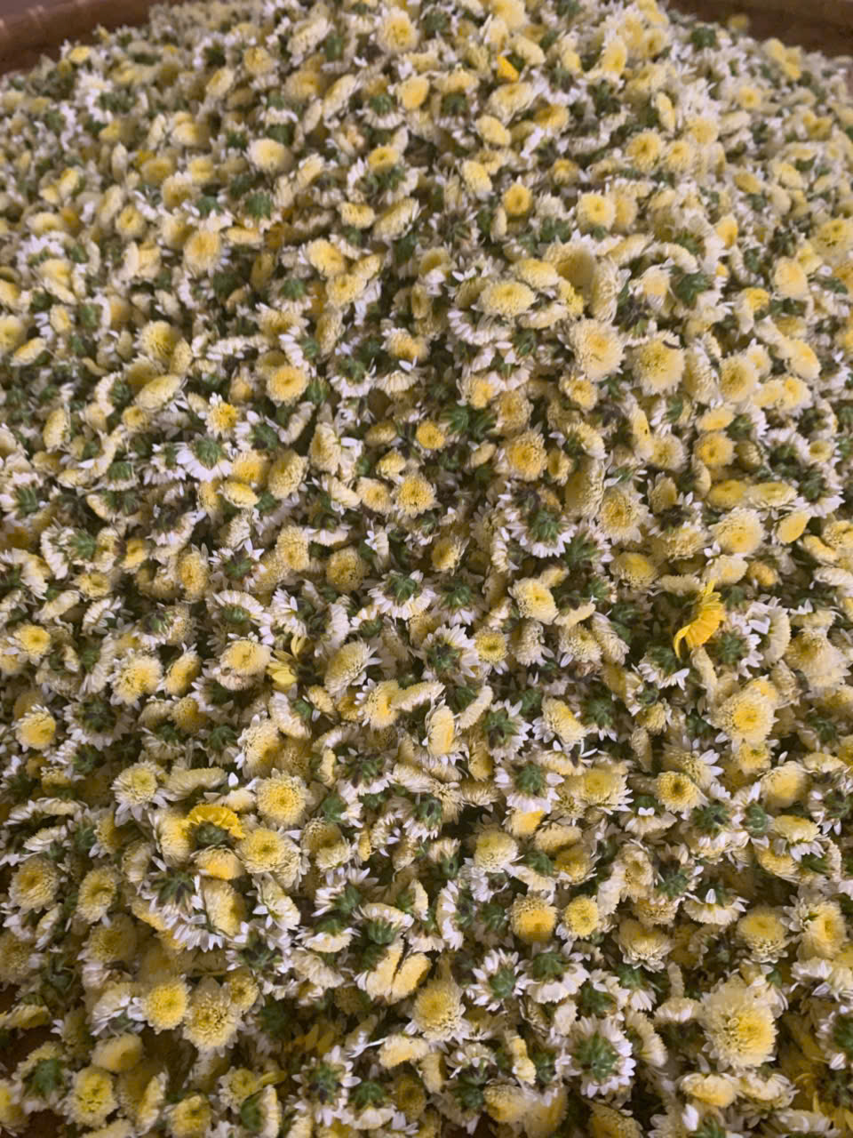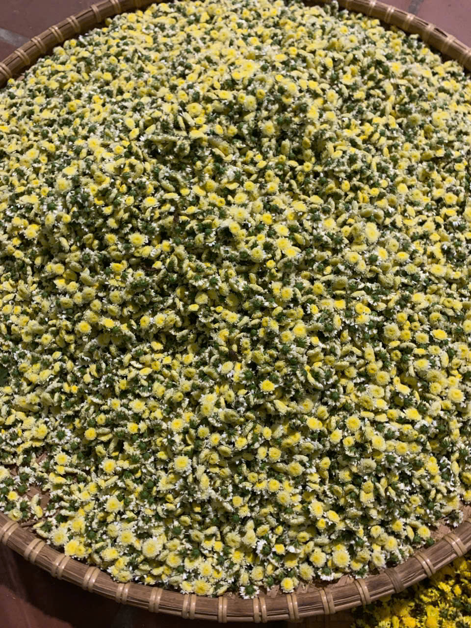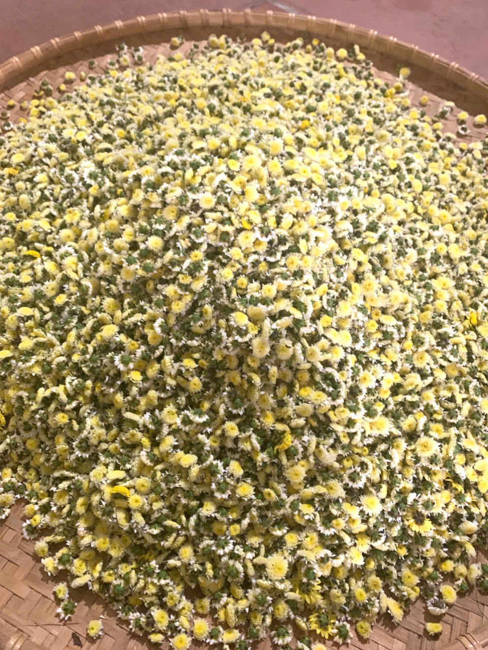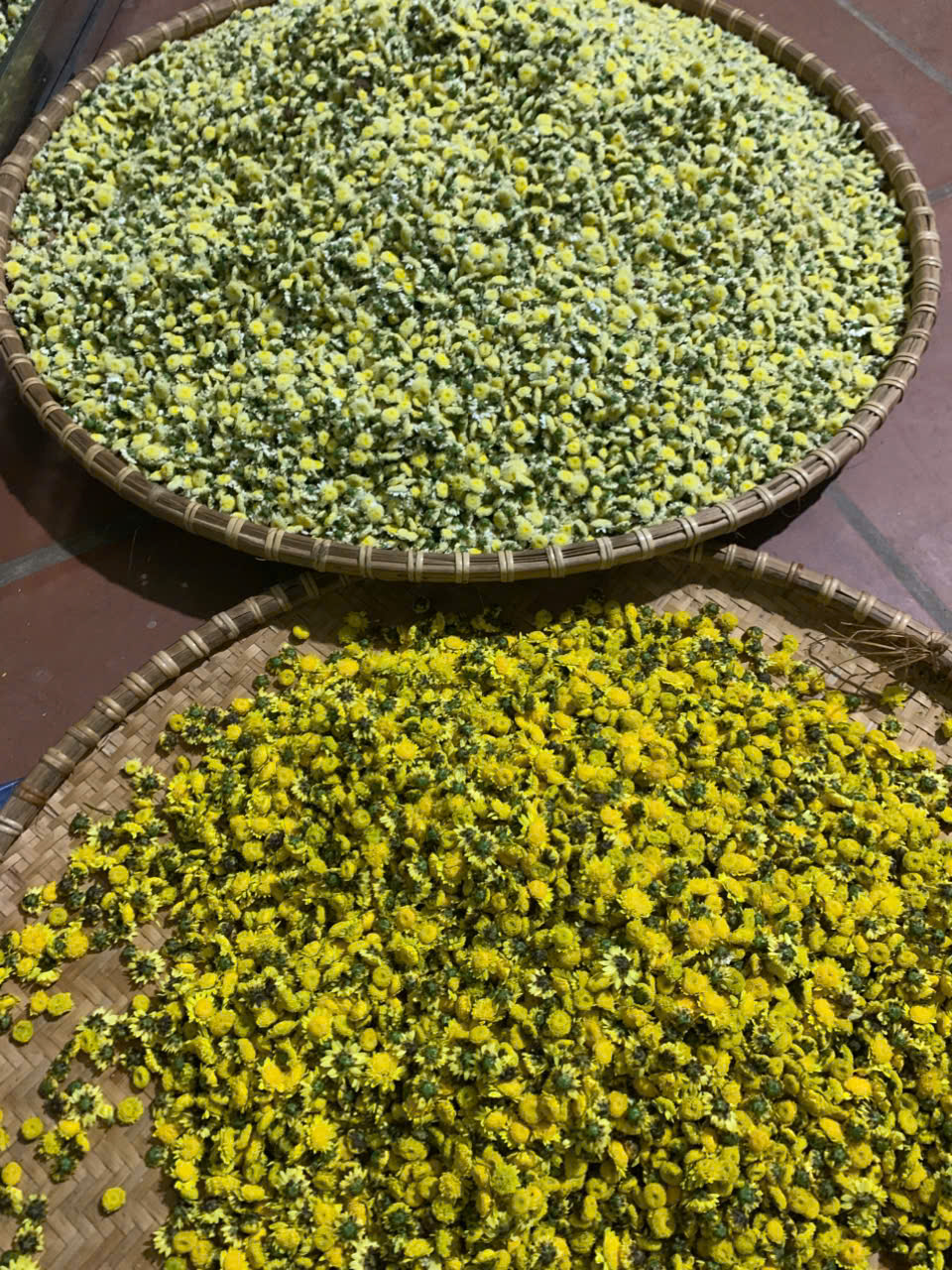 | 15 | Phơi sấy công nghiệp - Hoa cúc sau khi hái, được phơi ráo rồi đem sấy trong lò sấy để đảm bảo được màu sắc, hương vị, và dược tính nguyên vẹn. |