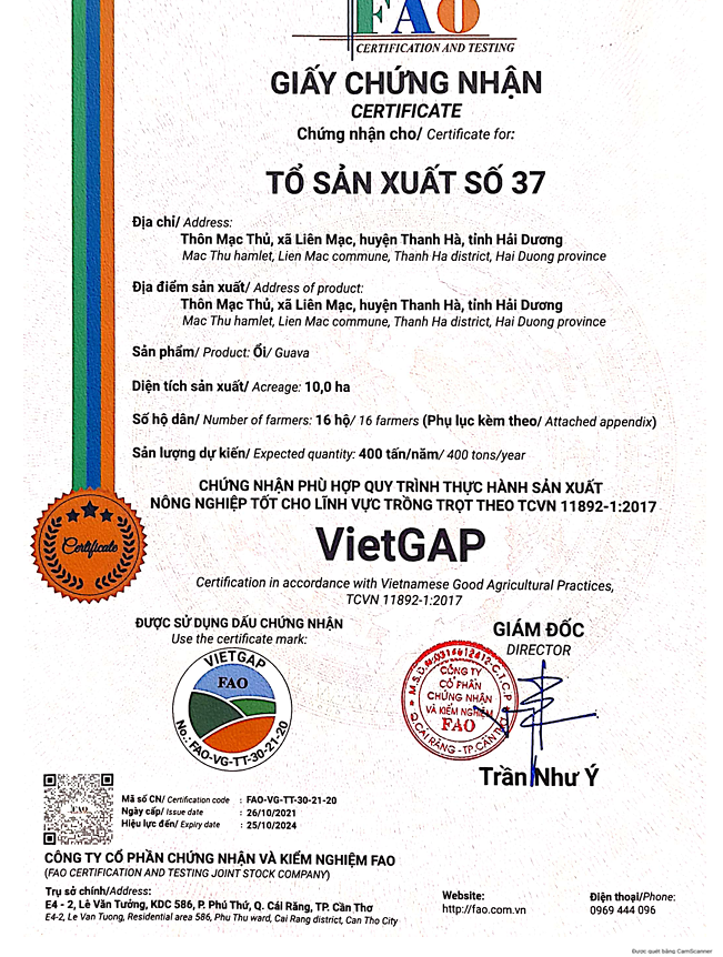 Hợp tác xã Nông nghiệp sạch Nam Vũ : FAO-VG-TT-30-21-20