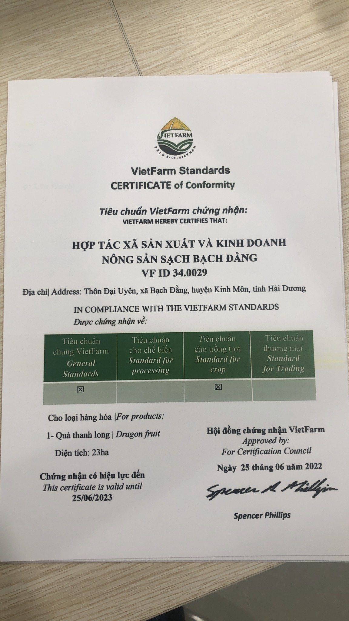 | Cơ sở sản xuất | HTX Sản xuất và kinh doanh Nông sản sạch Bạch Đằng |